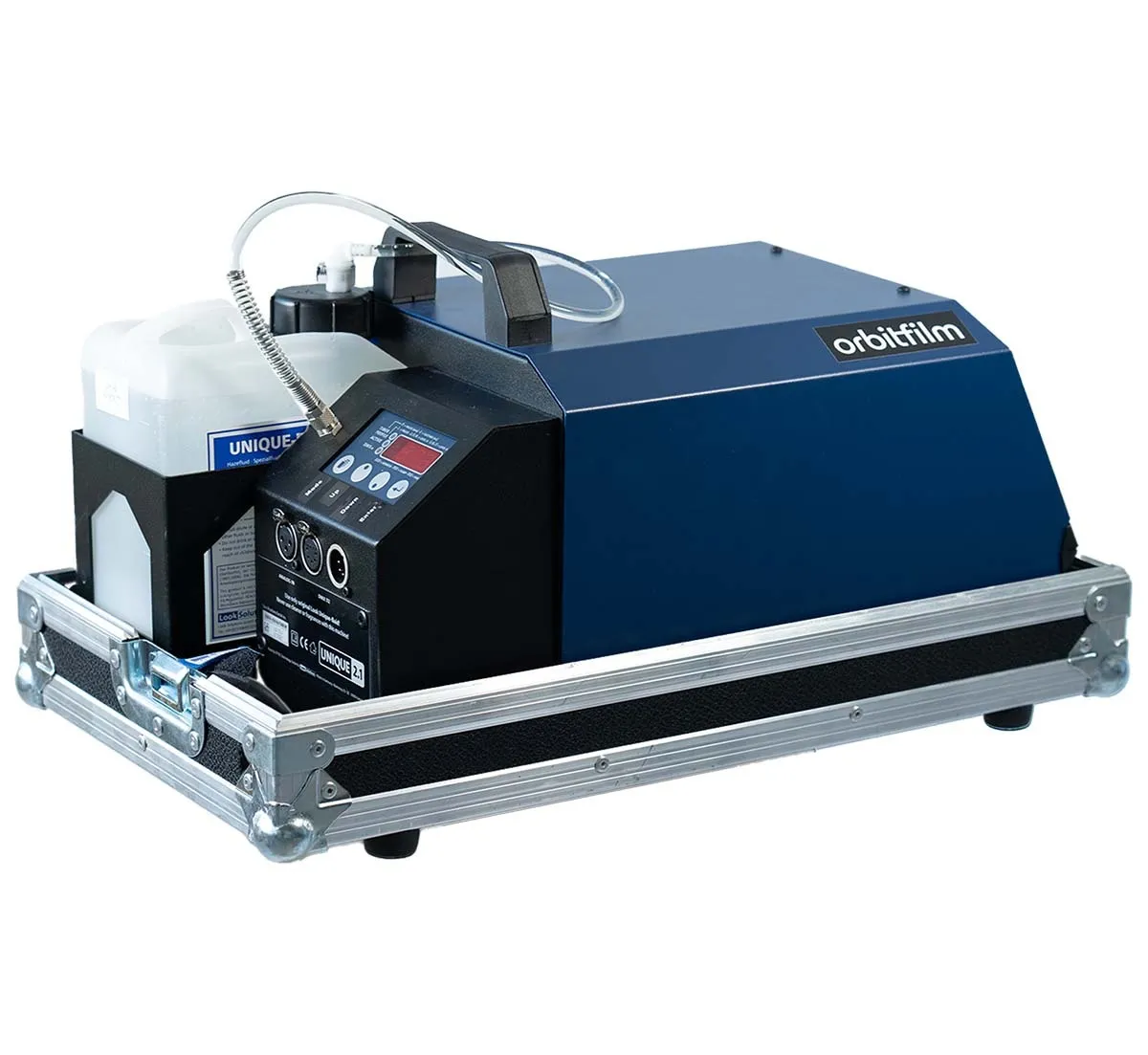 - Pumpe und Lüfter getrennt voneinander in 99 Stufen regelbar, dadurch regelbarer Output (vom feinsten Haze bis zum nebelähnlichen Effekt)